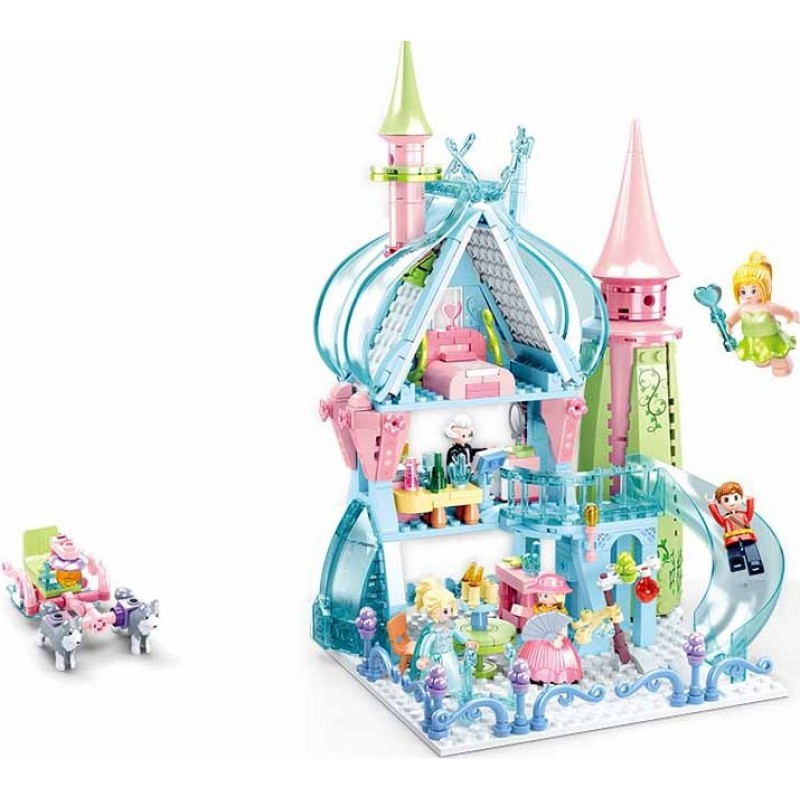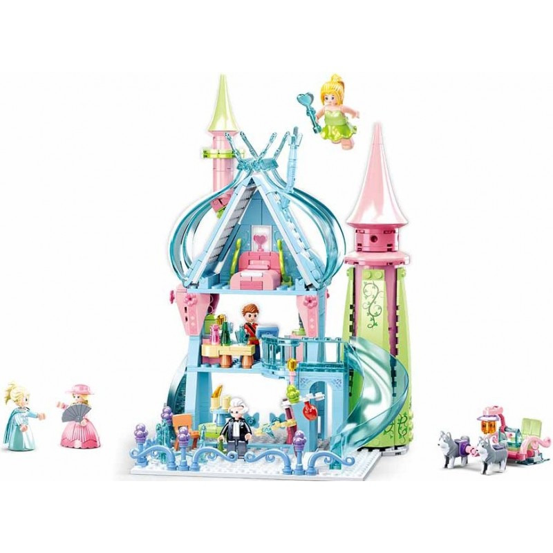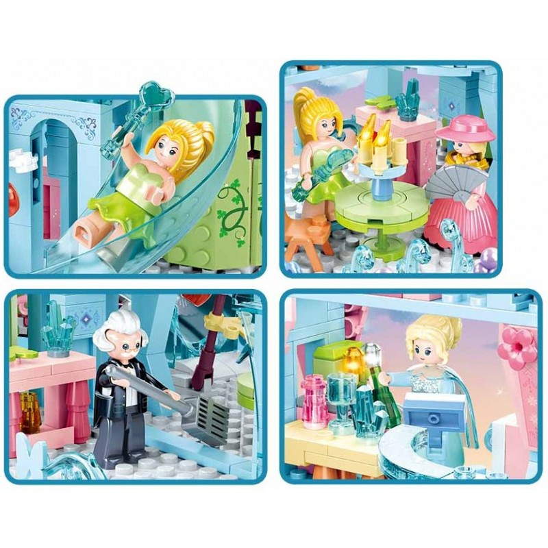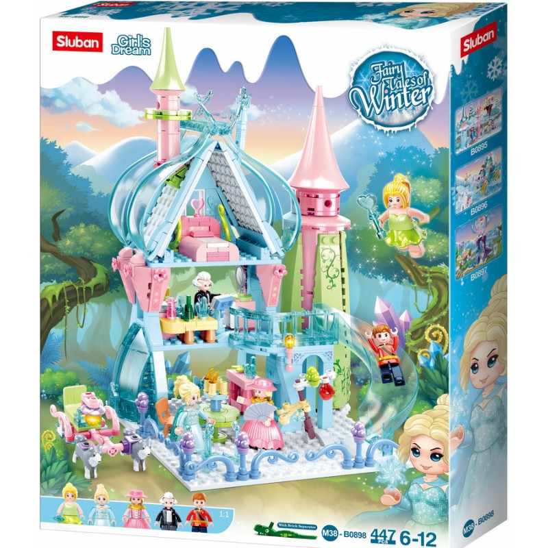 Конструктор Sluban Girl's Dream: Приказен Зимен замък (447 ч.) с 5 фигурки, 43х33х7 см