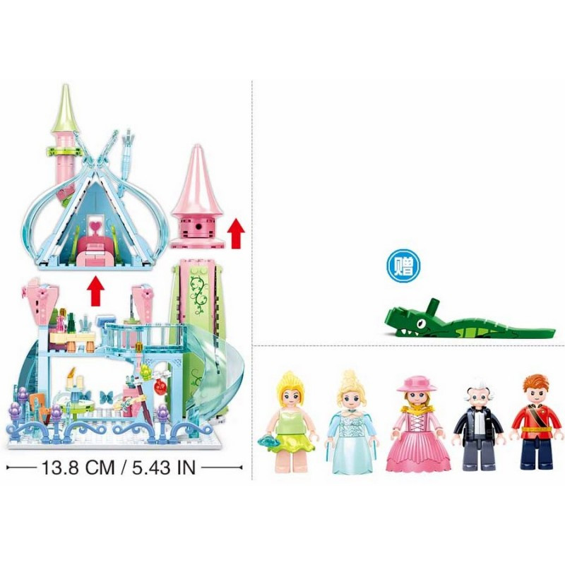 Конструкторът Приказният замък на Sluban е в очакване да бъде сглобен и ще ви предложи многобройни забавления и вълнуващи сцени с включените 5 фигури.