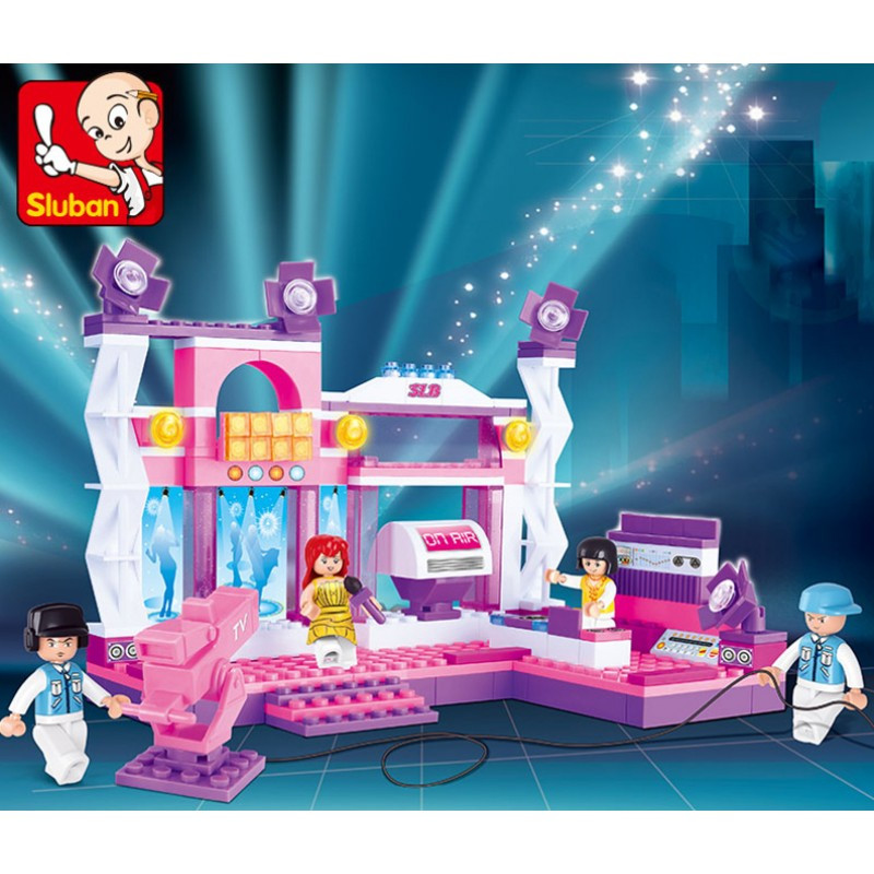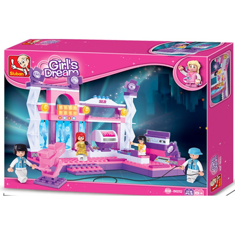 Конструктор Sluban Girl's Dream: Рок сцена (176 ч.) с 4 фигурки, 33х24х6 см