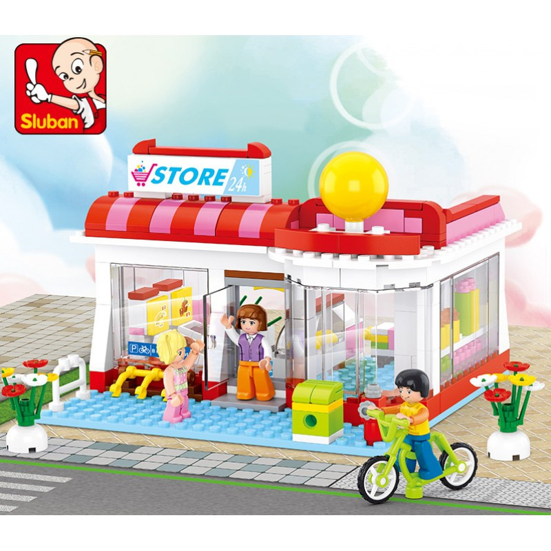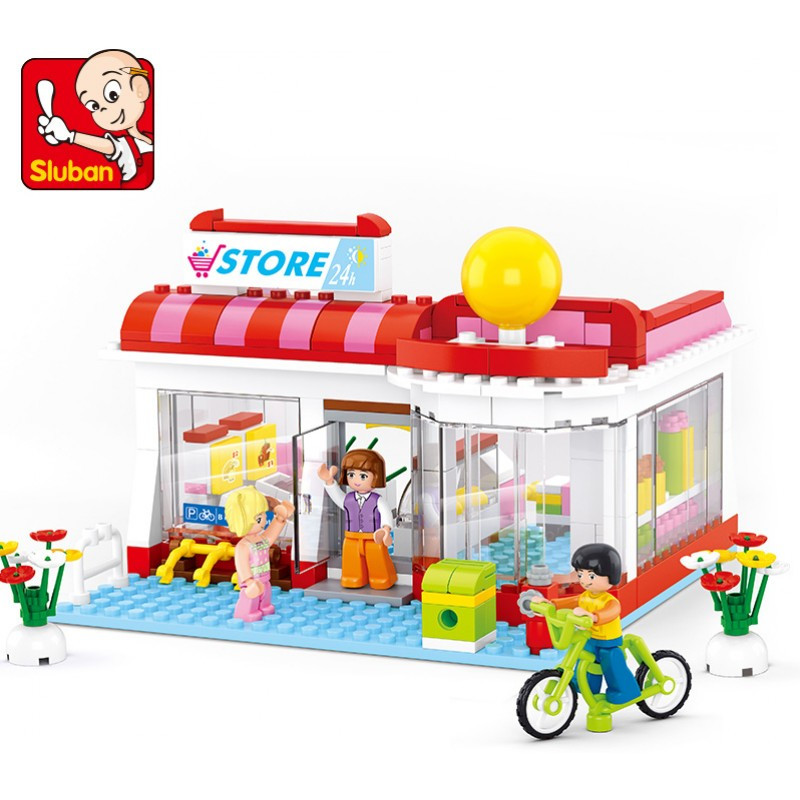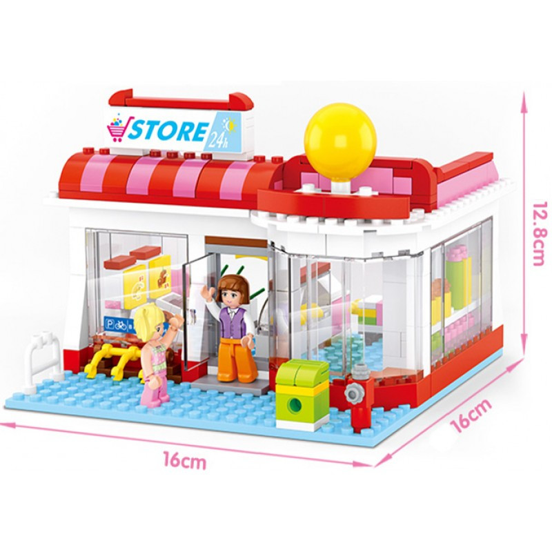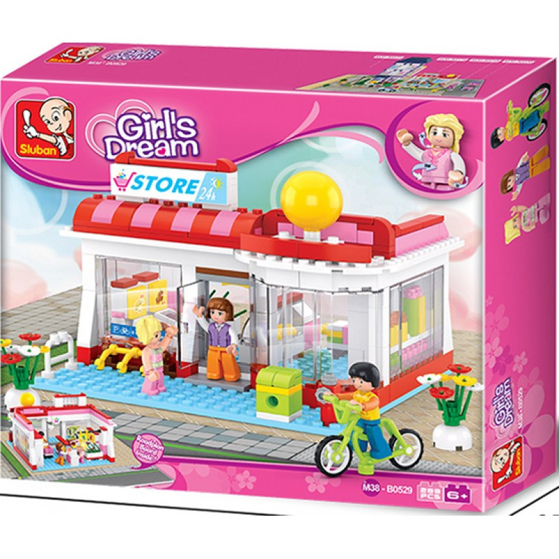 Конструктор Sluban Girl's Dream: Супермаркет (289 ч.) с 3 фигурки, 38х29х7 cm