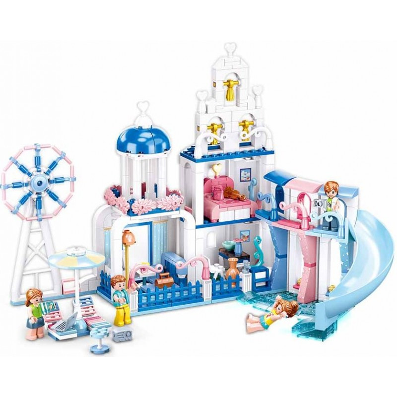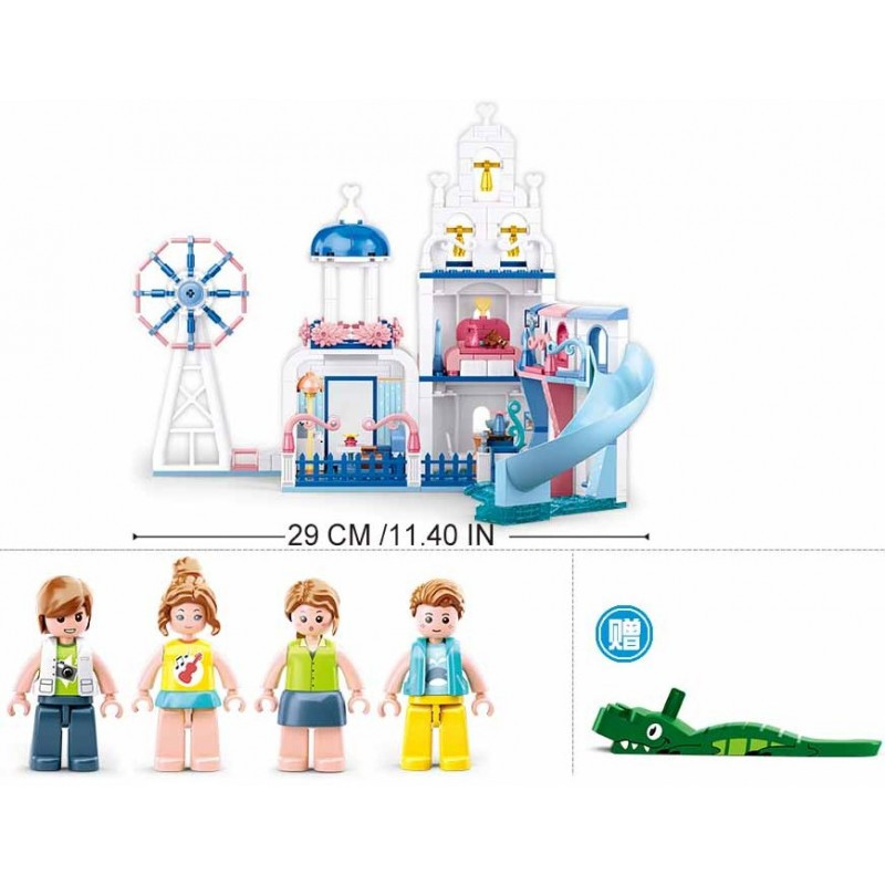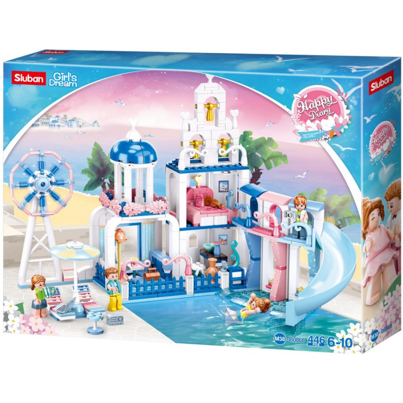 Конструктор Sluban Girl's Dream: Вила с пързалка (446 ч.) с 4 фигурки, 43х33х7 см