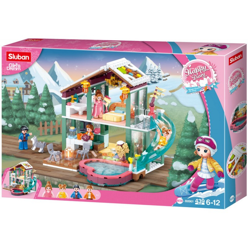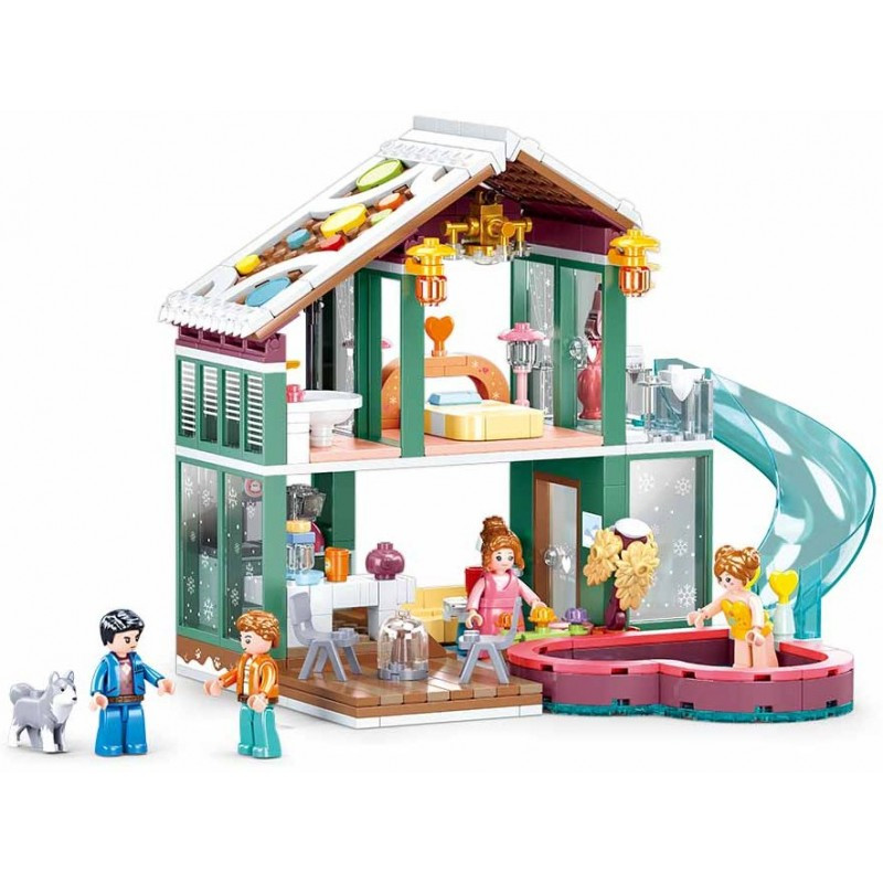 Този конструктор от Sluban ще ви предостави една приятна почивка през зимата в този СПА хотел, който ще ви предложи басейн, външна пързалка, стай за отдих и какво ли още не. Време е да стегнете куфарите и да се отправите на път към зимния курорт.