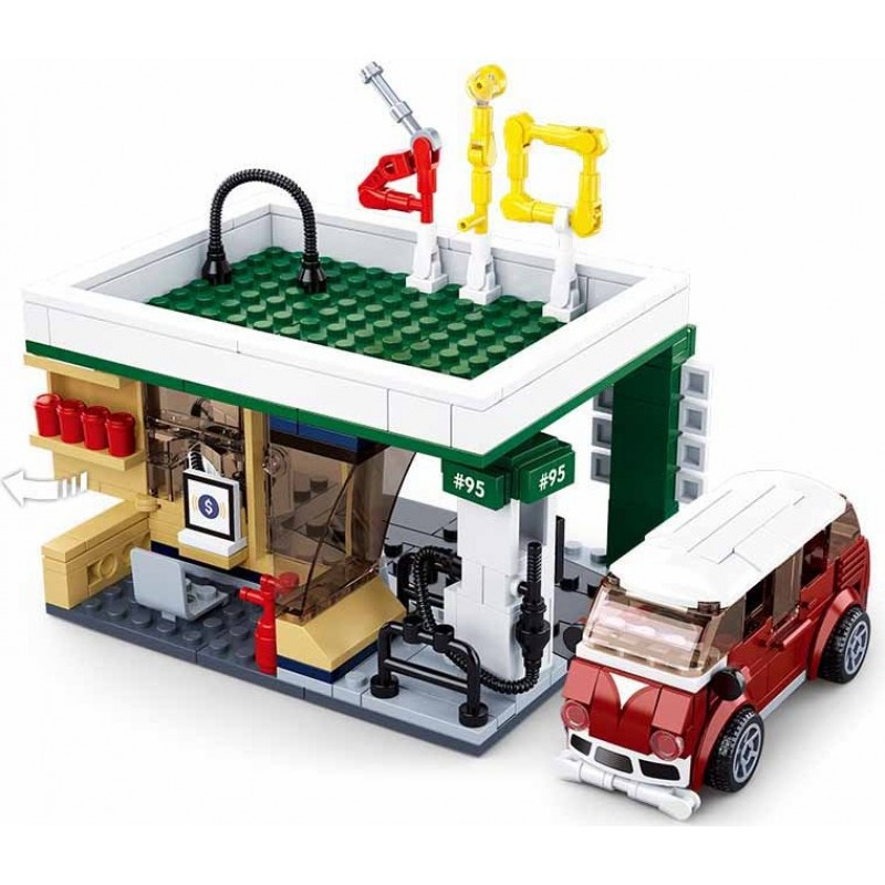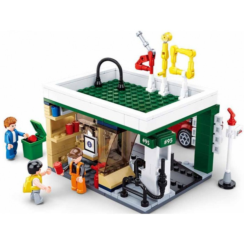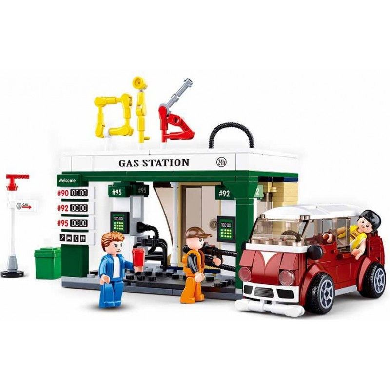 конструктор Sluban Сити Бензиностанция с микробус 322 ел. с 3 фигурки 38х29х7