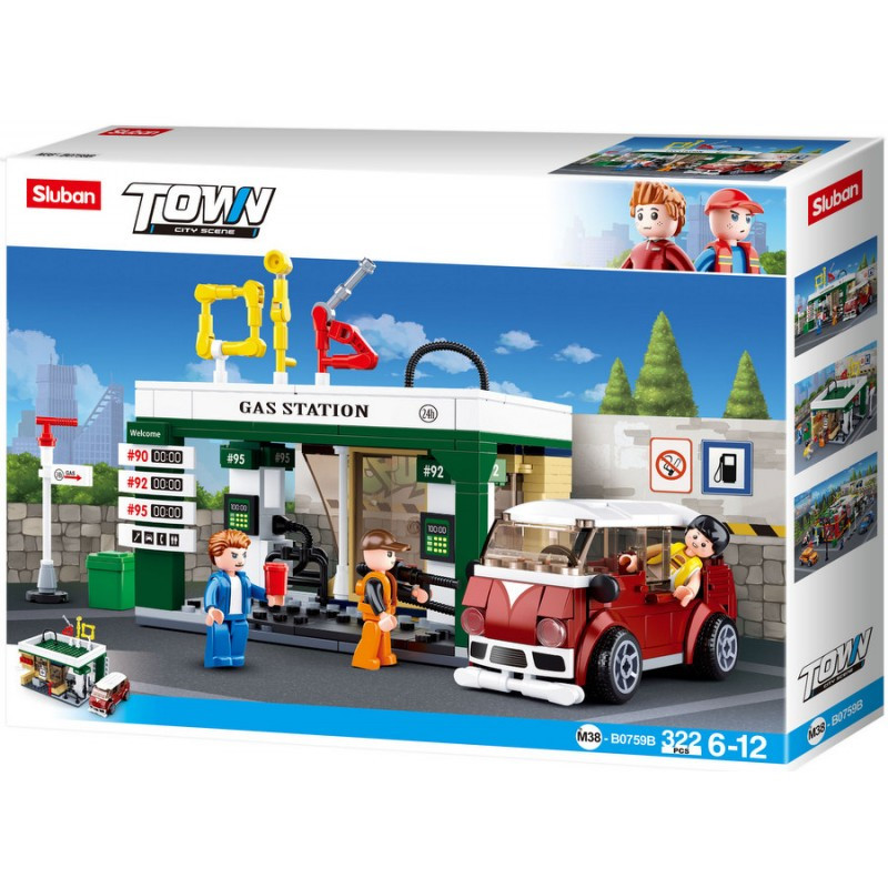 Конструктор Sluban Сити Бензиностанция с микробус 322 ел. с 3 фигурки 38х29х7