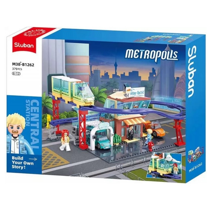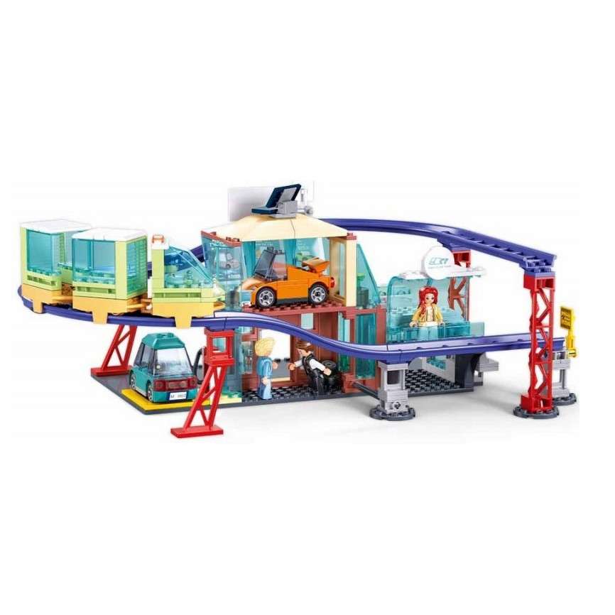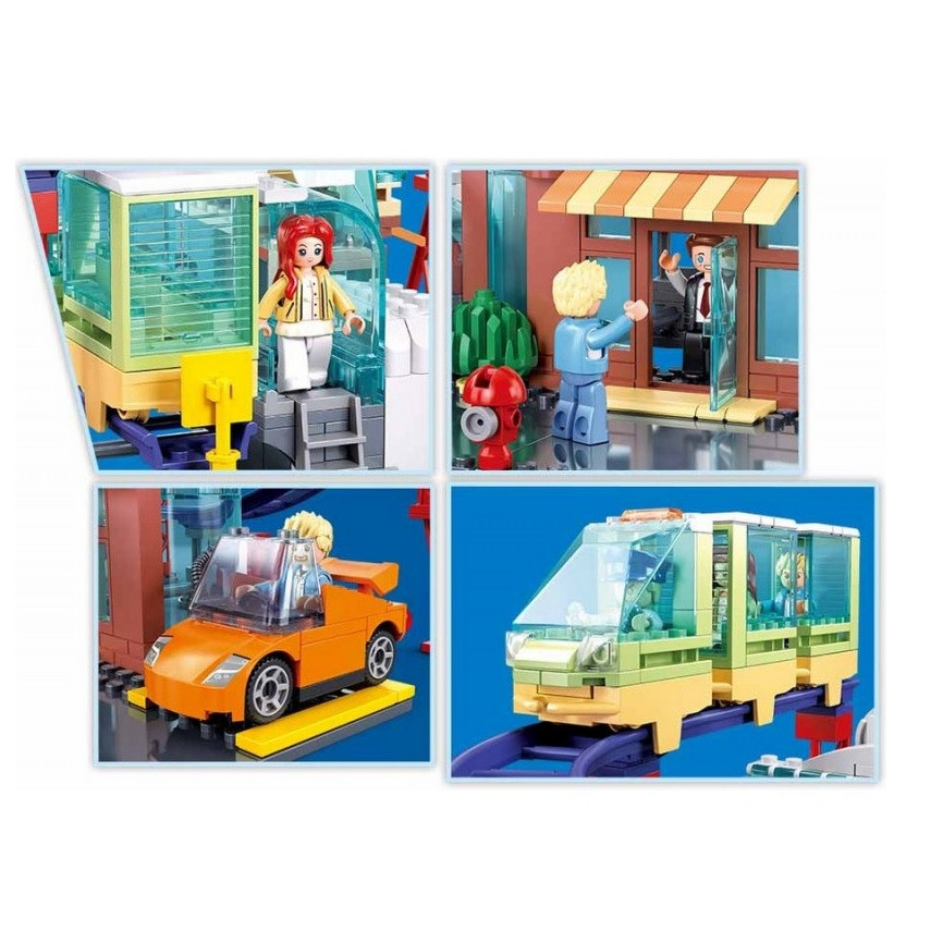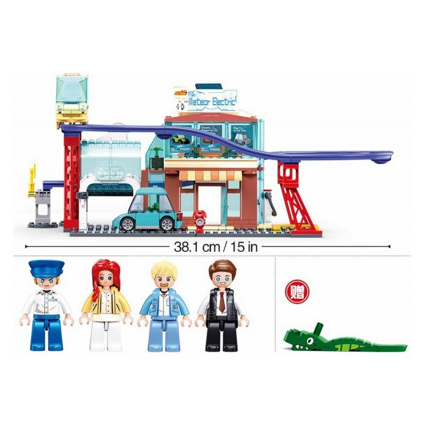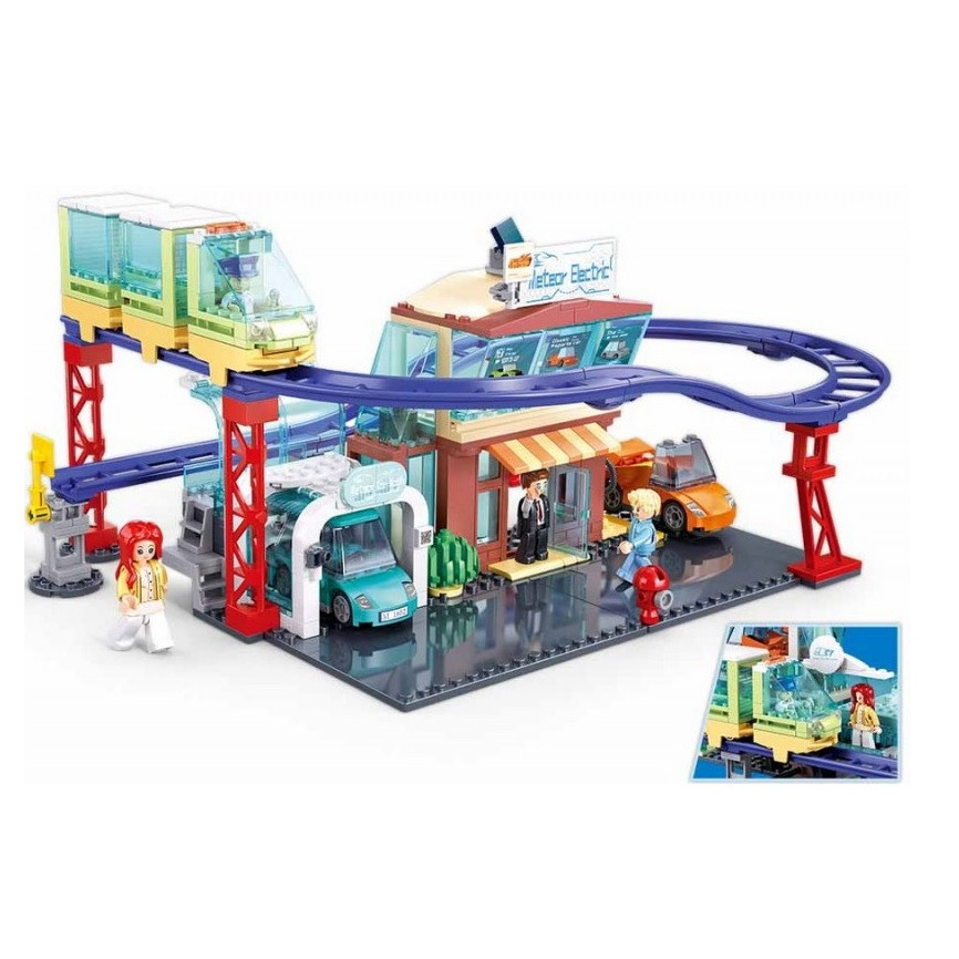 Конструктор Sluban Сити Метрополис Магазин за ел. коли и зарядна станция 402 ел. с 5 фигурки, 48х29х7 см