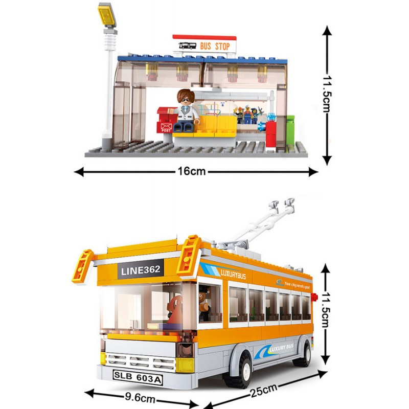 Този комплект съдържа 465 части и 5 мини фигурки. Подходящ за деца от 6 до 14 години. Констуирайте свой собствен тролейбус със спирка и превозете пътниците до желаните места, докато не спирате да се забавлявате. Оригинален конструктор на фирма Sluban. Изработен от безопасни за децата материали, които запазват формата и цвета си години наред. 100% съвместими части с най-известните марки конструктори. Характеристики: