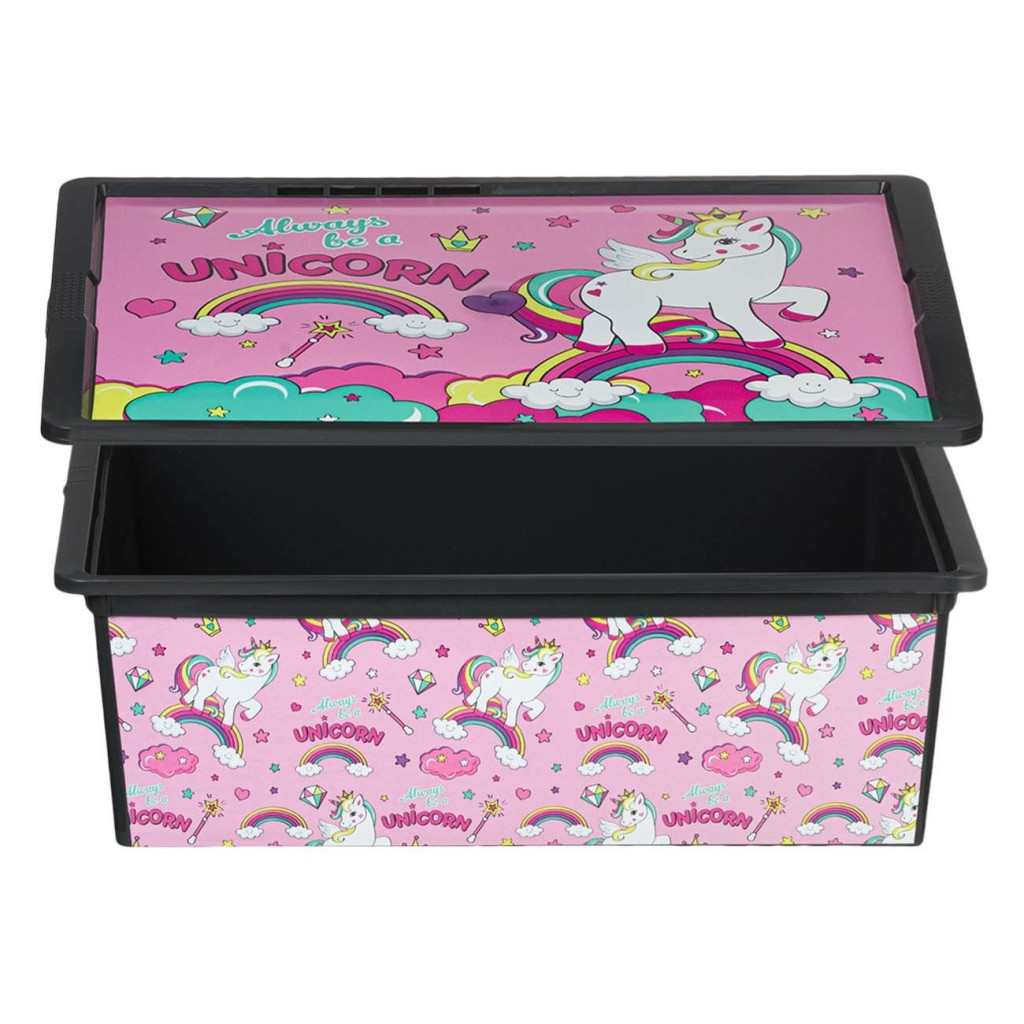 Кутия за съхранение с капак Еднорог, Unicorn rainbow, Пластмасова, 52.5x37x17.5 см