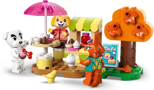 Момичета и момчета на възраст над 7 години създават свои собствени истории, вдъхновени от серията видеоигри Animal Crossing™ с играчката за построяване „Концертът на K.K. на площада“ (77052). Първо построяват познати сцени от екрана, а след това, заедно с трите минифигури от LEGO® Animal Crossing 3 и много разпознаваеми аксесоари от серията видеоигри, могат да пренесат игрите наужким там, където ги отведе въображението! Децата се подготвят за концерта на K.K., като изваждат микрофона от покрива на кемпера, преструват се, че свирят на китарата му или се присъединяват към Isabelle за групова гимнастика. След това наваксват с новините в кафенето с Audie, преди да отидат да поработят в кметството, където могат да получат карта за рецепти „Направи си сам“, да получат награди от банкомата и да проверят кошчето за рециклиране за нови предмети. Точно както във видеоиграта, дървото крие изненада, а флагът на Resident Service може да се персонализира. Децата могат също така да пренареждат фундаментите, за да променят формата на своя комплект LEGO Animal Crossing.