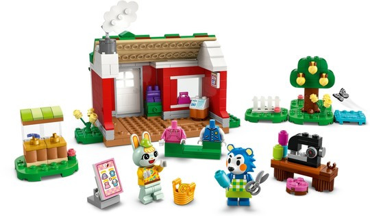 Играчката с магазин за деца включва 2 минифигури LEGO® Animal Crossing™, Sasha и Mabel от магазина на Able Sisters, и много дрехи.