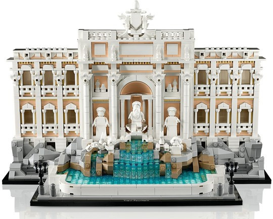 Дайте воля на креативността си с фонтана ди Треви в Рим, Италия. Потопете се в детайлите, докато създавате модела с елементи в топли нюанси на бяло, бледокафяво и розово, както и преливащи нюанси на синьо, с които да придадете дълбочина на водата.Постройте впечатляващата фасада на двореца „Поли“, увенчана с папски герб. Добавете различните скулптури, пресъздадени под формата на минифигури, и се насладете на великолепието на тази емблематична забележителност.