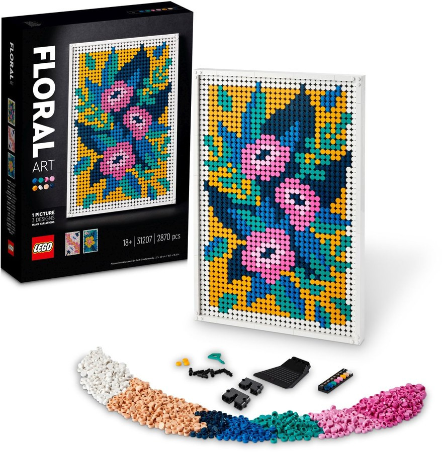 Цветя навсякъде – вкарайте природата вътре и се насладете на всички цветове, докато конструирате този комплект LEGO® Art Изкуство от цветя (31207) с 3 флорални мотива за избор и безкрайни възможности за персонализиране;