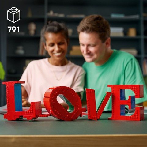 Подарък от тухлички за двойки – създайте своя собствена малка версия на известната скулптура LOVE на Робърт Индиана с този строителен комплект LEGO® Art за възрастни;