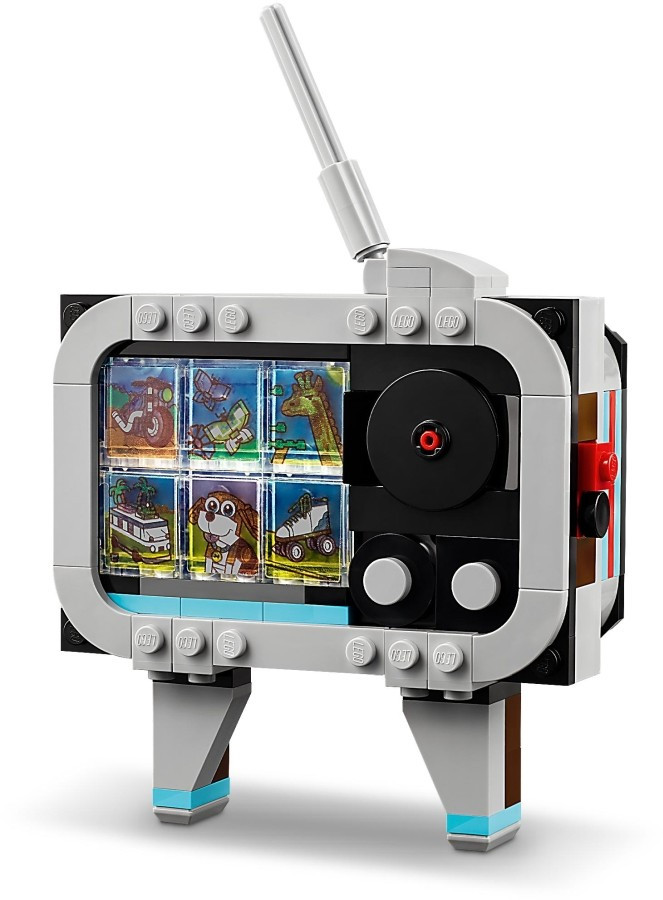 Комплектът ретро играчки LEGO® Creator „3 в 1“ дава на децата шанса да се насладят на 3 различни начина на строителство и игра с едни и същи тухлички. Те могат да построят детски фотоапарат, след което да го променят в ретро видеокамера или ретро телевизор с антена. Всичките 3 модела са страхотни експонати, които децата могат да поставят на рафтовете си.