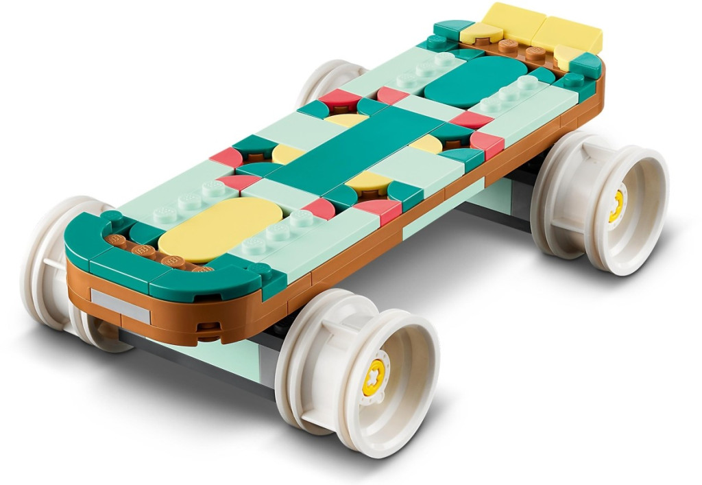 Страхотният комплект LEGO® Creator „3 в 1“ позволява на децата да построят цветна, движеща се ролкова кънка, след което да я променят в мини скейтборд или радиокасетофон.