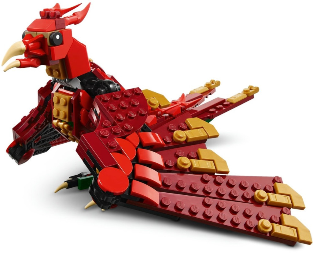 Върнете се назад във времето за невероятни средновековни приключения с 3 различни митични създания! Спуснете се от небето с великолепен дракон, за да защитите сандък със съкровища, пълен със скъпоценни камъни. За още фентъзи екшън го променете в титанична морска змия, дебнеща във водата, или пък във величествен феникс, канещ се да полети. Изборът е ваш с този фантастичен комплект „3 в 1“!