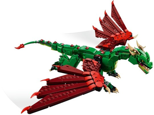 3 средновековни създания в 1 кутия – играчката LEGO® Creator „3 в 1“ Средновековен дракон позволява на момчета и момичета на възраст 9 и повече години да построят и променят 3 различни фантастични животни, използвайки едни и същи тухлички;