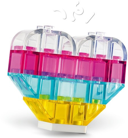 Творчески строителен комплект – полупрозрачни тухлички, елементи за очи и уста и тухлички за закачане за показване добавят прозрачен блясък и допълнително творческо забавление към детските творения;