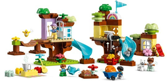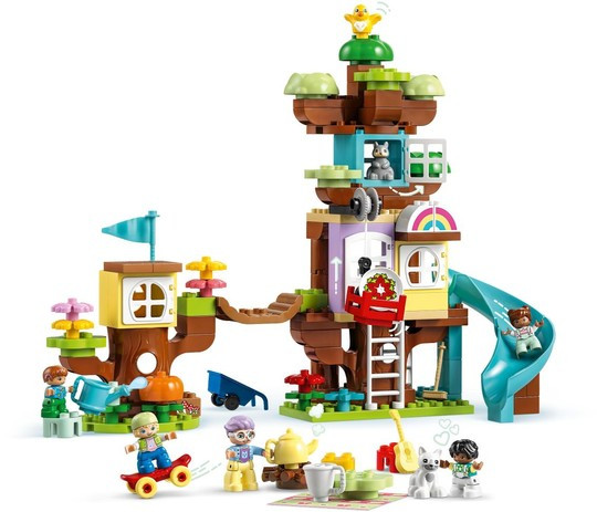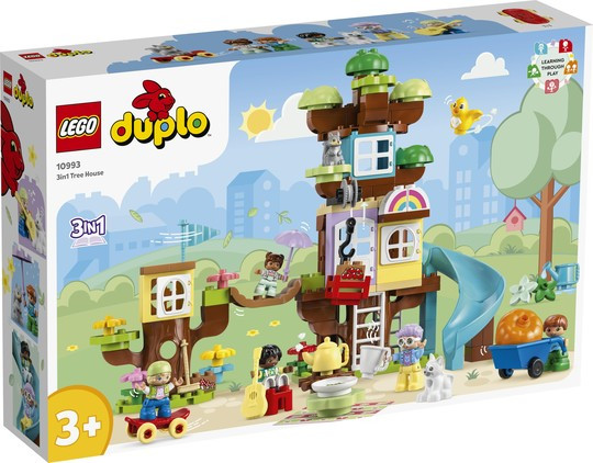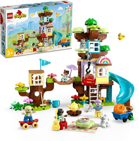 Забавна играчка с дървесна къща за малки деца – малките деца на възраст 3+ изследват върховете на дърветата, развиват индивидуалността си и усъвършенстват двигателните си умения с LEGO® DUPLO® Дървесна къща „3 в 1“ (10993);