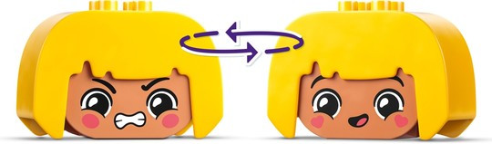 Помогнете на малките деца да изследват своите емоционални реакции с играчката за когнитивно обучение LEGO® DUPLO® Моите първи големи чувства и емоции (10415). Предлага се с 4-ма различни герои, всеки с 2 различни изражения, така че децата в предучилищна възраст да могат да променят лицата на играчките, за да предадат начина, по който се чувстват.