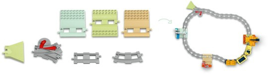 Малките деца поемат на динамично образователно пътуване с комплекта с интерактивен влак. Първо построяват релсите, след това заемат мястото на машиниста и могат да избират различни забавни дейности за своя влак, включително да го мият, да го товарят и да зареждат двигателя. За всяка дейност има тухличка за действие, с която играта оживява!