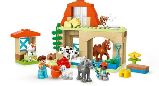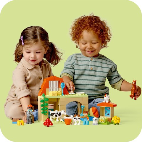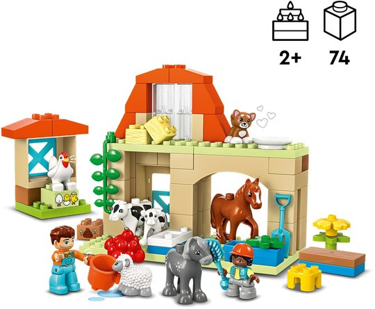 Познавате ли малко дете, което обича комплекти за игра във ферма? Комплектът „Грижа за животните във фермата“ (10416) е идеалният подарък за всеки малък любител на животните. Образователната играчка за малки деца на възраст над 2 години се предлага с 8 фигури на животни LEGO® DUPLO® – включително фигури на кон, овца, крава и кокошка – за да зарадва всяко малко дете, което обича ролеви играчки от реалния живот и да създава нови приятели във фермерския двор.