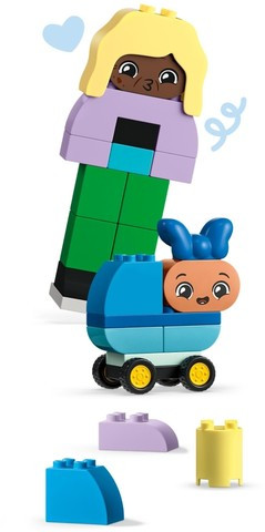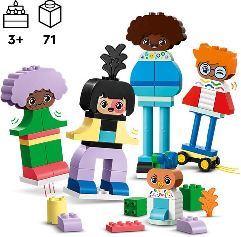 Играчката с възможност за персонализиране се предлага със 71 тухлички и части, за да се конструират 5-имата герои, включително 5 тухлички с перуки и 1 основа с колела. Въображението на малките деца се развихря, докато комбинират тела, крака, лица и кос, за да създадат безкраен набор от приятелски настроени герои. С 10 различни тухлички за лице, малките деца могат да изразяват как се чувстват героите им, и да описват какво означават тези изражения. Комплектът също така осигурява идеален претекст за разговор, в който възрастните могат да поговорят с малките деца за това, че всички са различни и това е страхотно!