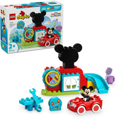 Двама познати герои – с фигура LEGO® DUPLO® на МикиМаус и компютъра Тудълс, плюс вярната червена кола на Мики Маус от телевизионния сериал на Disney Junior Клубът на Мики Маус;
