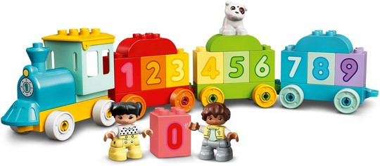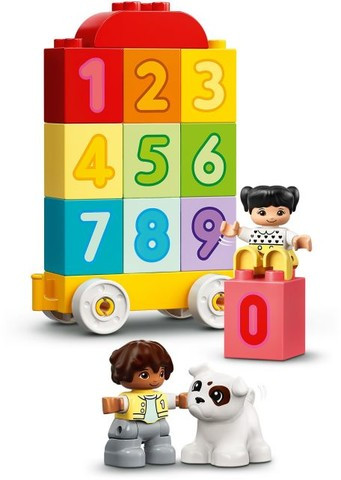 Малките могат да поставят числовите тухлички върху и от вагоните, да ги подреждат в правилния ред и да ги изграждат заедно в числова стена. С движещи се колела, отварящ се покрив и приятелски настроени DUPLO герои, за да споделят забавлението, Числовият влак ще пренесе вашето малко дете в свят на въображаема, развиваща игра!