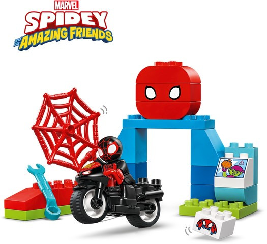 Творческа играчка, която разпалва въображението за игра – включва фигура LEGO® DUPLO® на Спин, движещ се мотоциклет, щаб, който може да се променя след построяване, и рампа, мрежа и тухличка с паяка робот Трейс-И;
