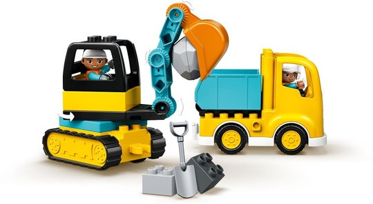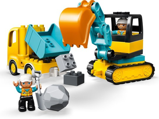LEGO® DUPLO® Камион и верижен багер (10931) насърчава малките строители да изследват безкрайни игри с отворен край. Докато разиграват въображаеми сцени на строителна площадка с играчката камион, багера и 2 строителни работници, малките деца развиват ценни физически и когнитивни умения, които остават за цял живот.