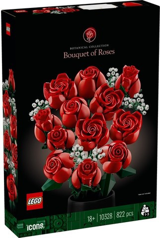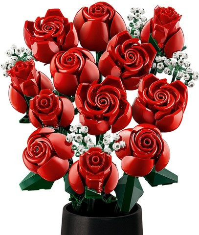 Удоволствие за конструиране, букетът от LEGO включва дузина червени рози, включително 4 напълно разцъфнали, 4 в процес на разцъфване и 4 пъпки, с дълги зелени стъбла за излагане на показ във ваза, плюс 4 стръка гипсофила с малки бели цветчета. Лесен за сглобяване, букетът е елегантен експонат за всяко пространство и може да се комбинира с други комплекти от ботаническата колекция на LEGO.