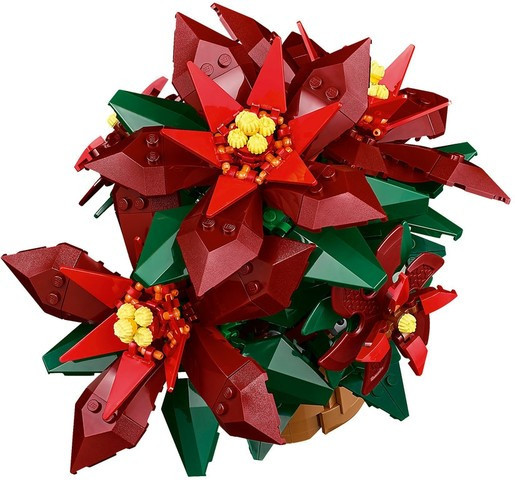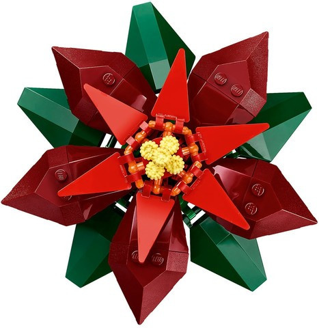 Подвижно растение LEGO® – тази интерпретация от LEGO на обичаното сезонно цвете е подвижна и има зелени листа и 5 звездовидни цвята с червени листа (прицветници) с жълт циатиум в центъра;