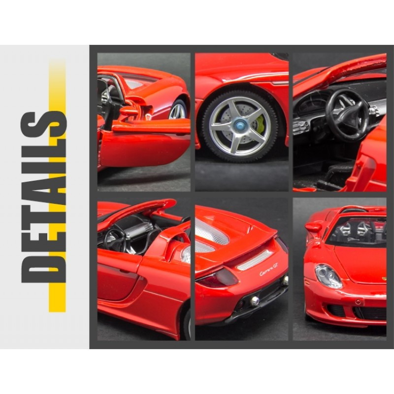 Метална кола 1:24 Porsche Carrera GT с отваряеми врати преден капак и багажник