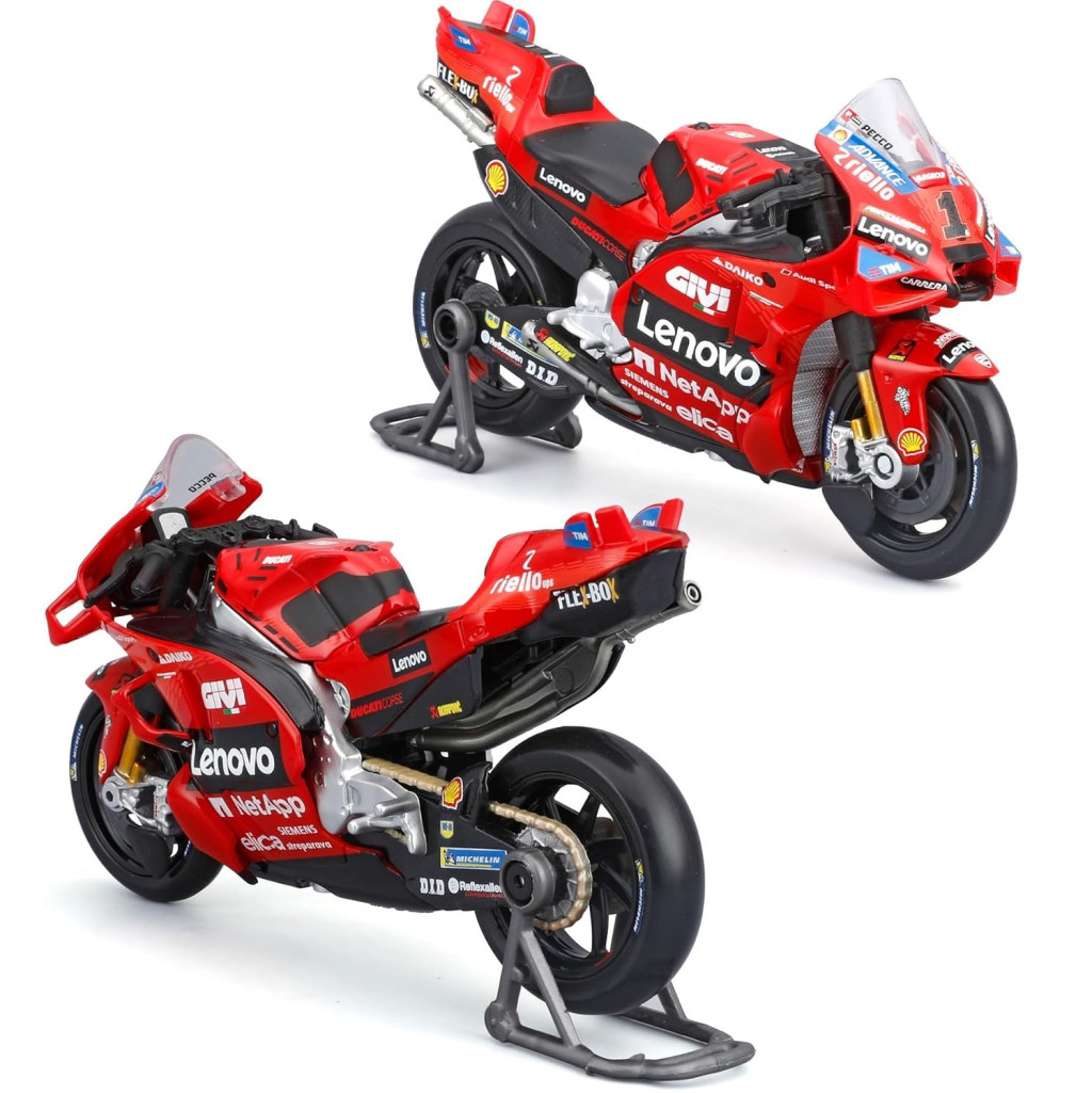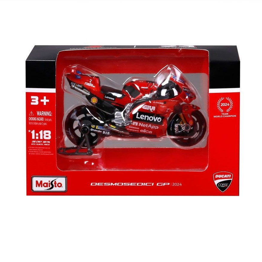 Моделът Maisto Desmosedici Ducati Lenovo е детайлно изработена умалена реплика, която пресъздава духа и визията на високоскоростния MotoGP мотор.