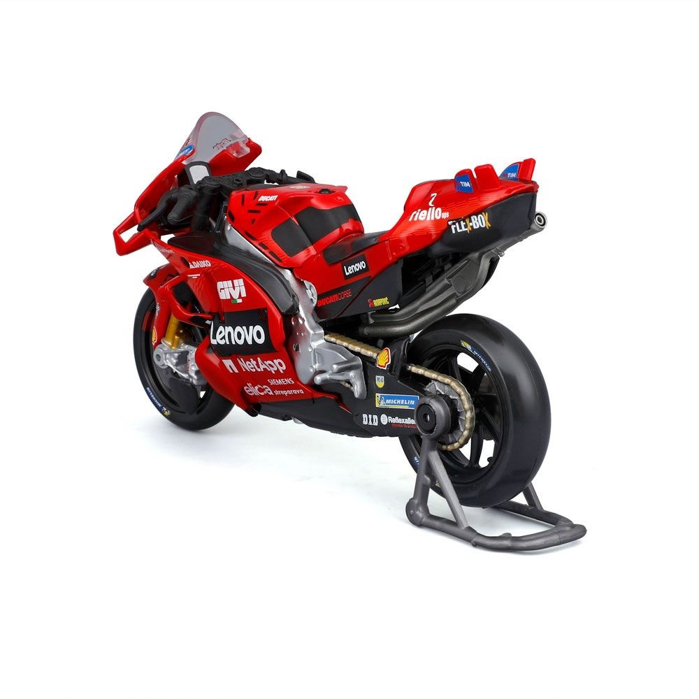 Комбинацията от метал и пластмасови детайли, заедно с автентичните цветове и графики на отбора Desmosedici Ducati Lenovo, превръщат модела в истински акцент за всяка колекция.