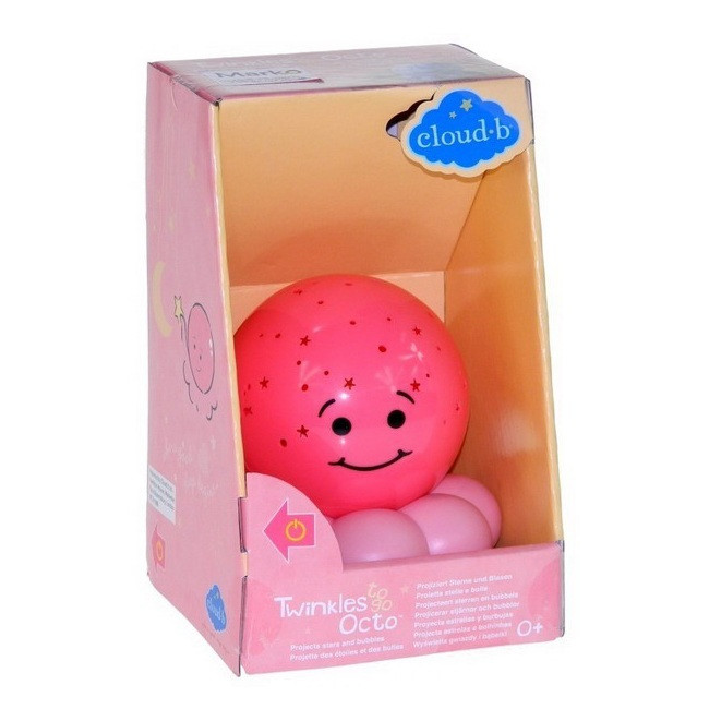 Нощна прожекционна лампа ОКТОПОД за детска стая от CloudB, Twinkles To Go Octo, Розова