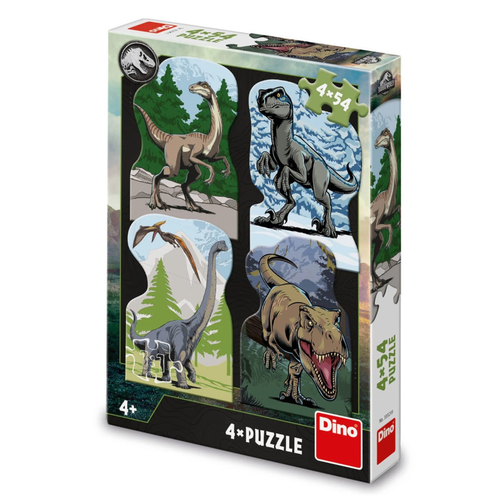 Висококачествен пъзел 4 в 1 динозаври, предназначен за момичета и момчета над 4 години. Опаковката съдържа 4 бр. пъзела от по 54 части. Подходящ подарък за рожден ден, Коледа или друг повод.