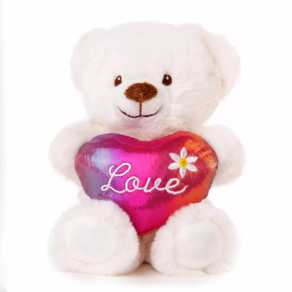 Плюшено мече със сърце, Бродерия лъскава-хамелион, 16 cm