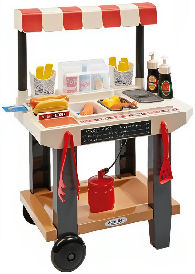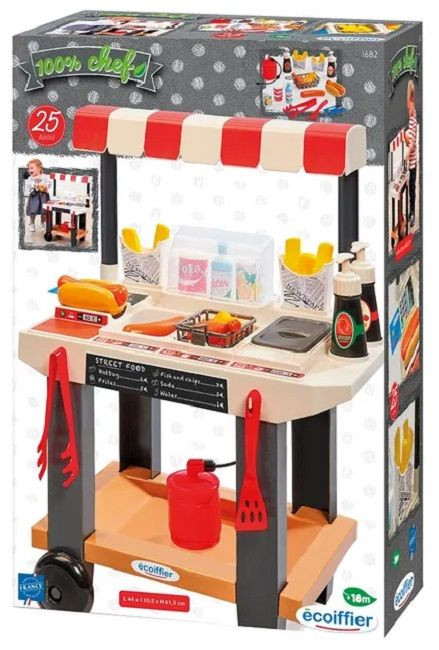 Игралният комплект от Ecoiffier ще пренесе малчуганите в ресторантьорския свят и ще им донесе много забавления. Играта с комплекта дава на децата чувство за независимост, развива тяхното въображение и креативност. Комплектът се състои от необходимото оборудване и функции, които правят играта отражение на дейностите, които децата наблюдават в ежедневието си и обичат да имитират.