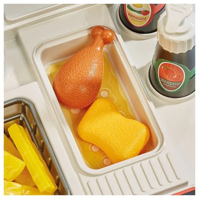 Комплектът се състои от 25 части и разполага с всичко необходимо за един истински готвач: станция за готвене на месо, място за пържене на картофки и аксесоари. Включени са сосове, напитки и дори газова бутилка. Касата е интегрирана към кухнята и разполага с четец на кредитни карти. Всички части от комплекта са изработени от пластмаса в ярки цветове и без остри ръбове.
