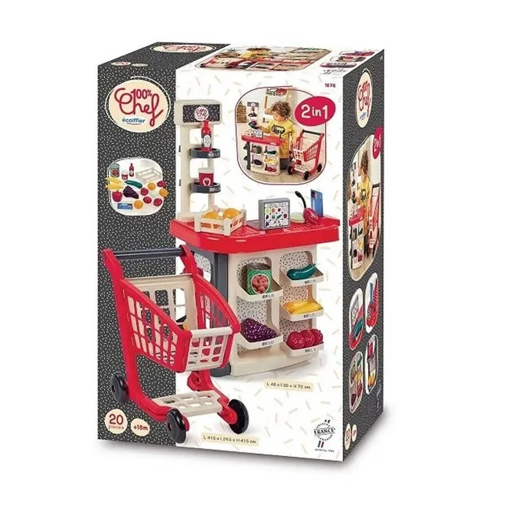Супермаркет с количка за пазаруване и аксесоари за игра и забавление на децата, 72 х 48 х 29.5 см., Ecoiffier 3-in-1