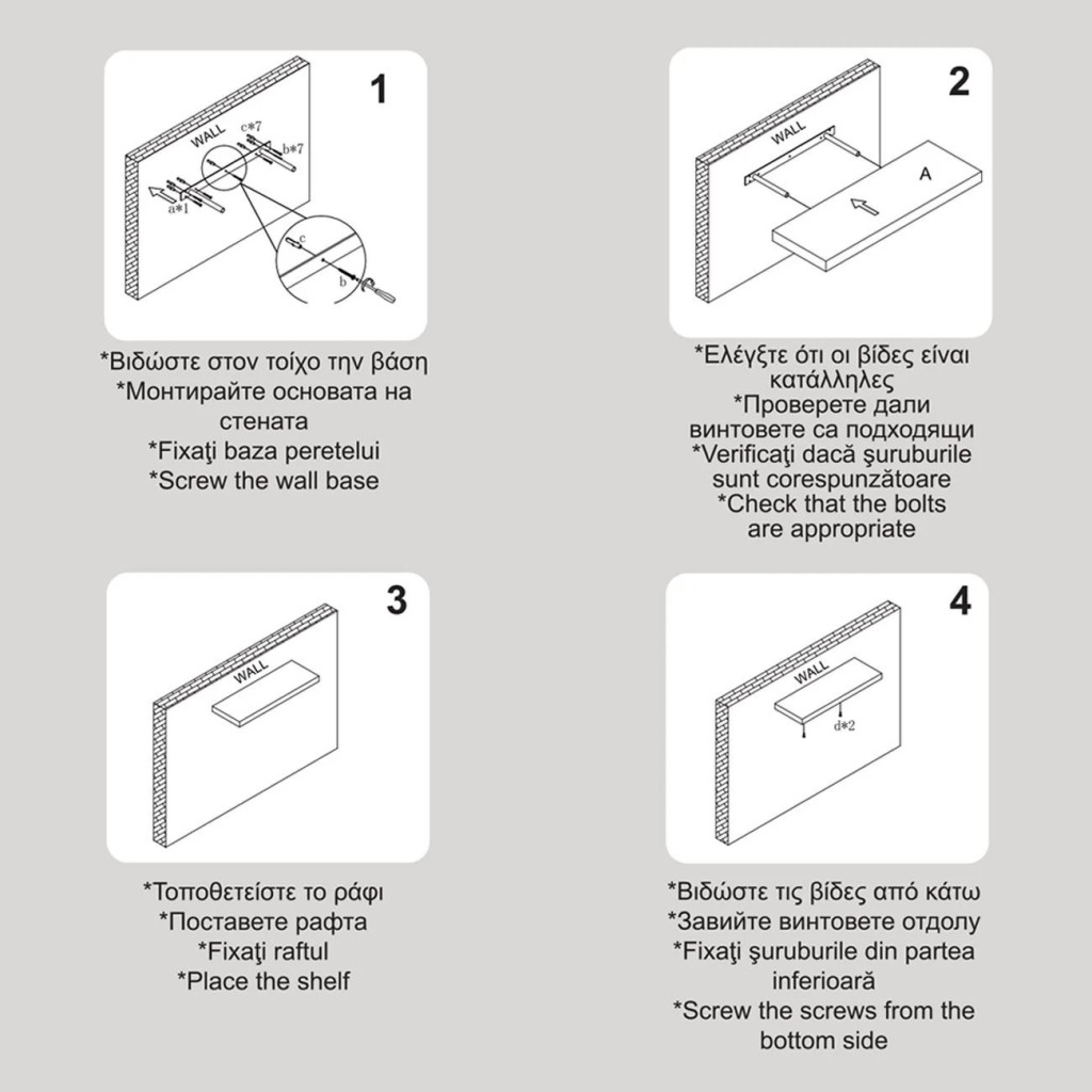Не е необходимо да се сглобяват и лесно се монтират с 2 винта и дюбели (включени).