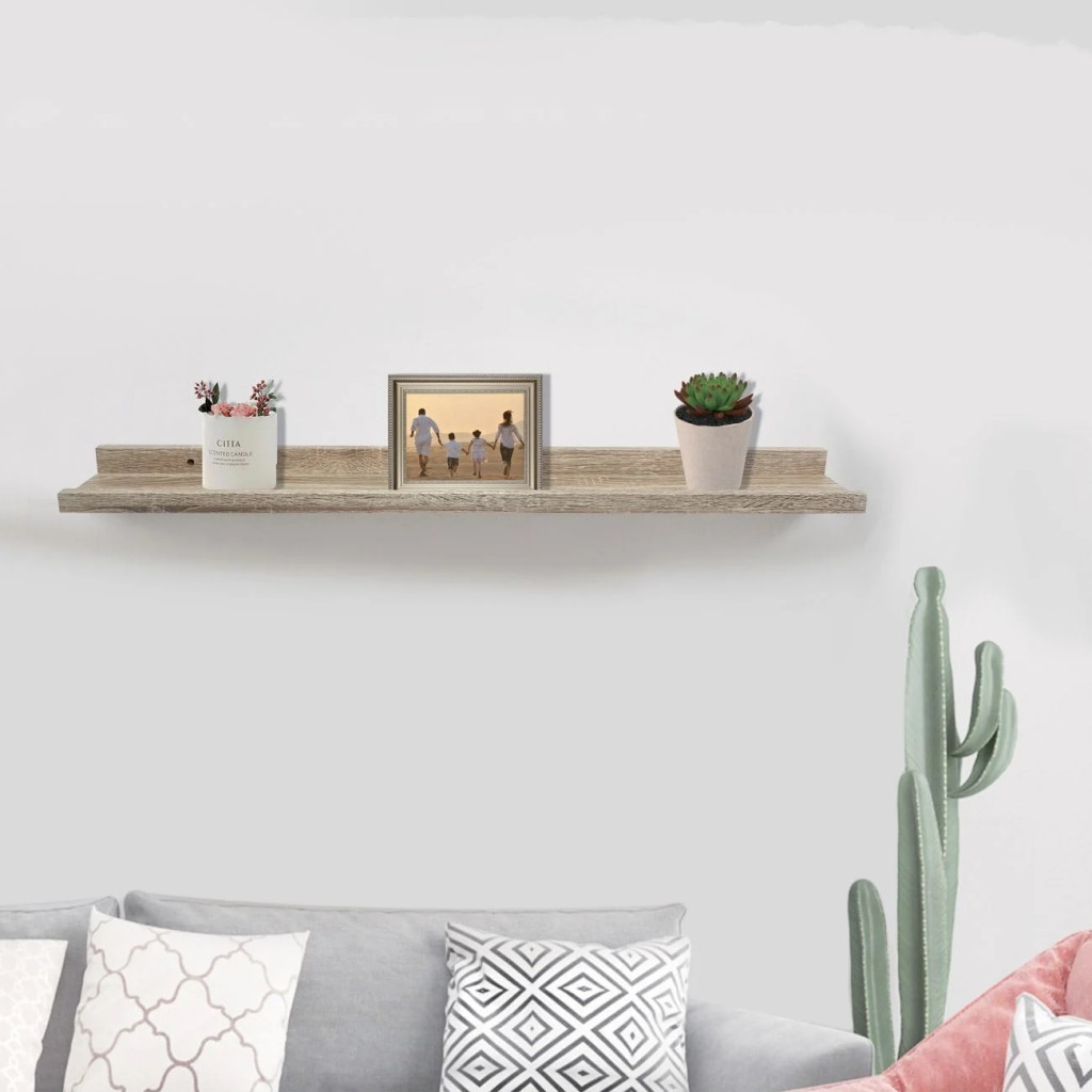 Универсален рафт за стена от дърво, 48 x 10 x 4 cm с 2 винта и дюбели в комплект