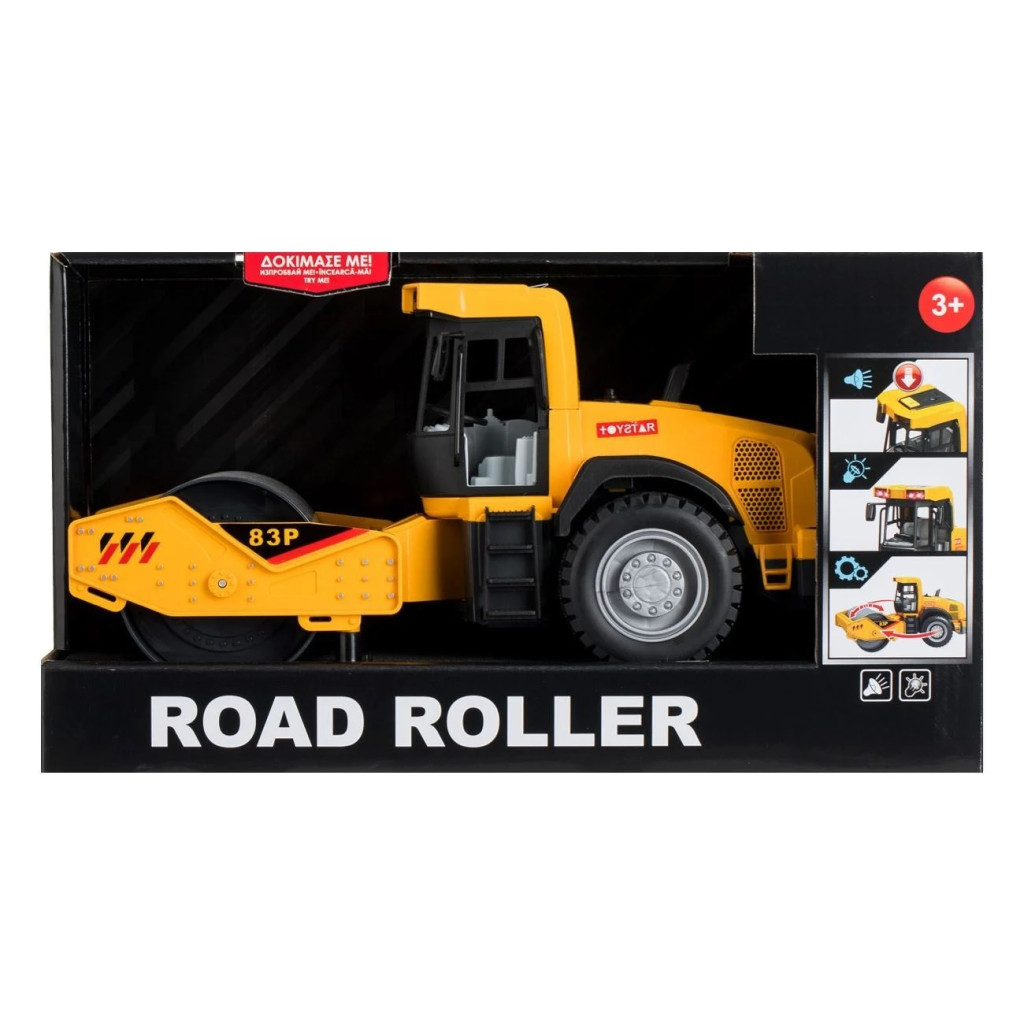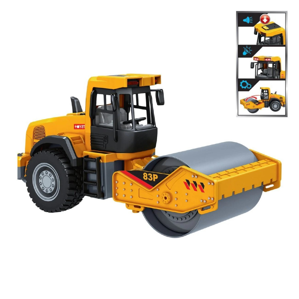 Строителен автомобил валяк с голям цилиндър, работен звук и светлина.