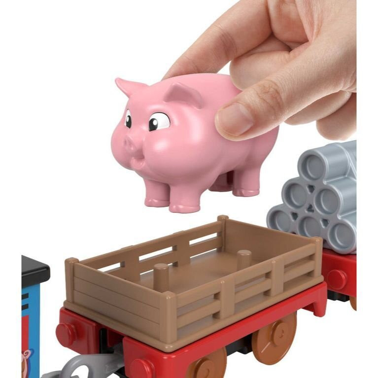 Модел HHN47-HHN48 McColls Farm Adventures Thomas Thomas & Friends TrackMaster Motorized. Подходящо за деца над 3 год.* Моторизиран двигател на TrackMaster Thomas и пътнически вагониКогато животните са на свобода, Томас и приятелите му също си представят себе си като диви животни. Всеки захранван с батерии двигател е украсен с различно животно и с товарен вагон за забавна доставка във фермата. Децата могат да завъртят превключвателя отгоре на влаковете, за да изпратят Томас, Пърси или Кана да се състезават във вълнуващи приключения по всяка писта на Томас и приятели, с изключение на дървото.