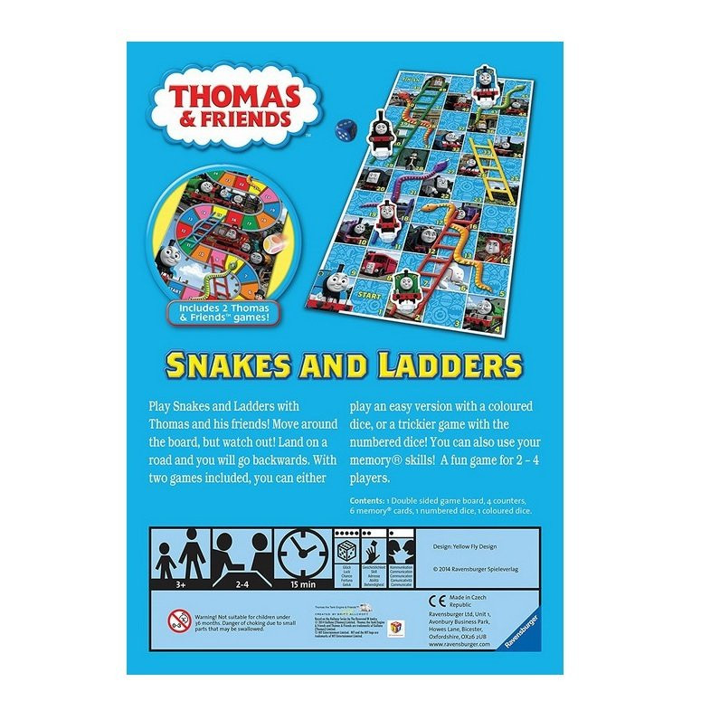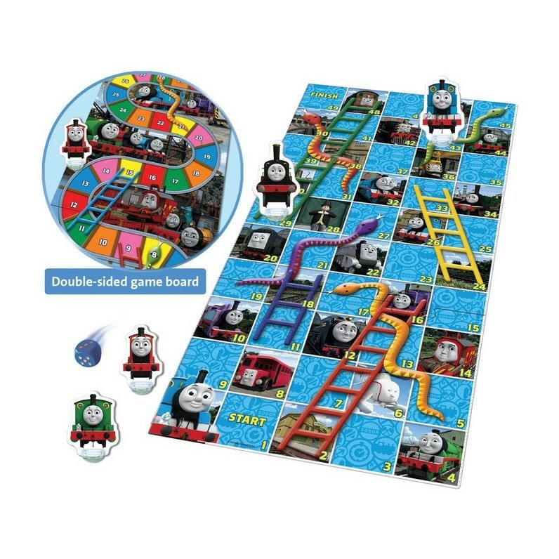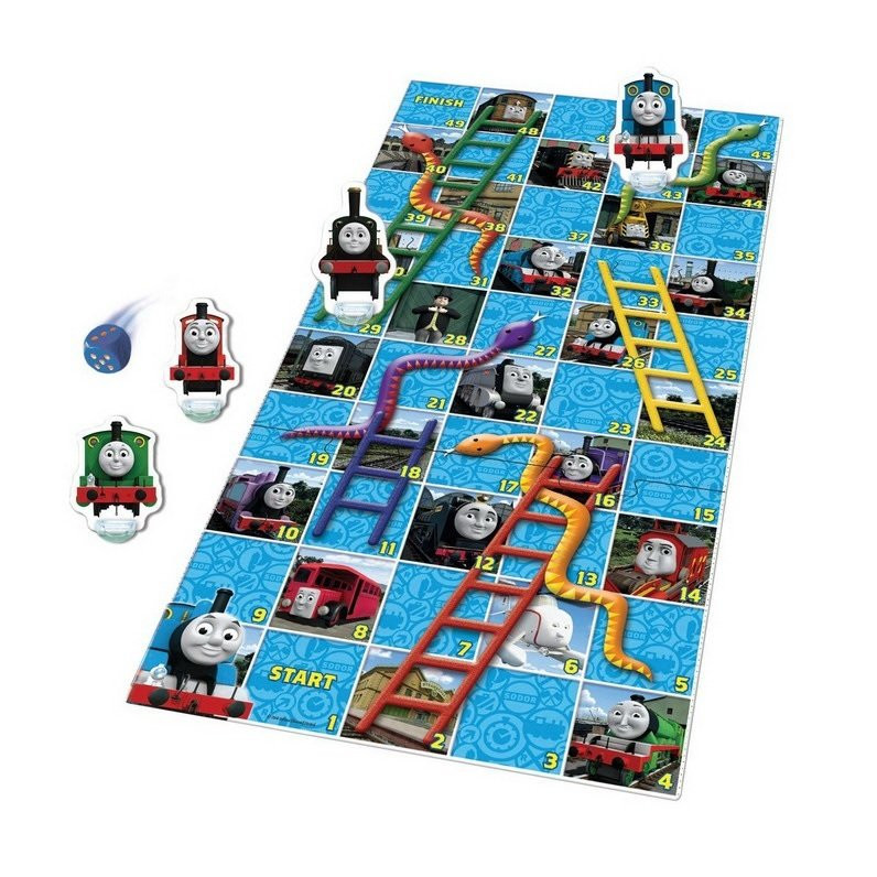 Играйте с Thomas the Tank Engine, като следвате номерациите и се пазите от "змиите" хвърляйки зарчетата..Тази игра включва:*1x двустранен игрален борд,*4x броячи,*6x карти,*1x номерирано зарче *1x цветно зарче, по-лесна версия на играта