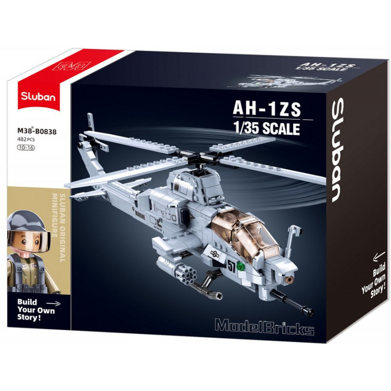 конструктор Sluban Армия AH-1Z Щурмови хеликоптер точен модел с 2 фигурки 482 ел. 30х24х13