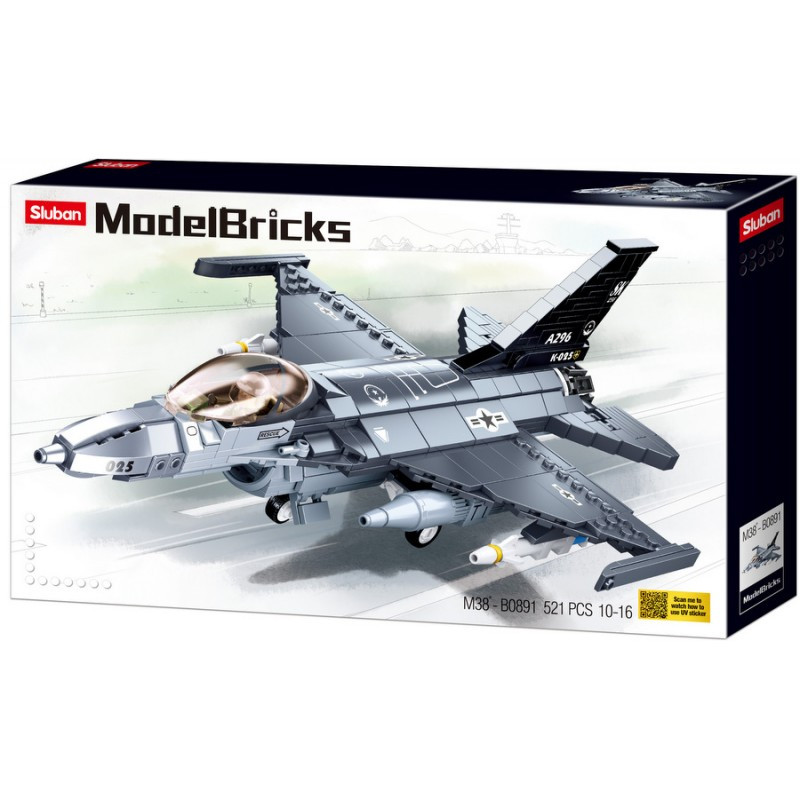 конструктор Sluban Армия Изстребигел F-16 FALCON точен модел с 1 фигурка 521 ел. 30х24х13