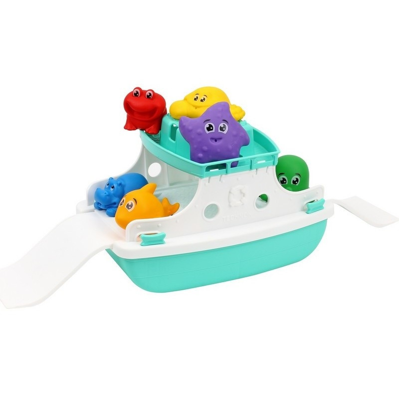Кораб-ферибот със свалящи се палуби и 6 меки играчки за баня, 27х17х16 cm