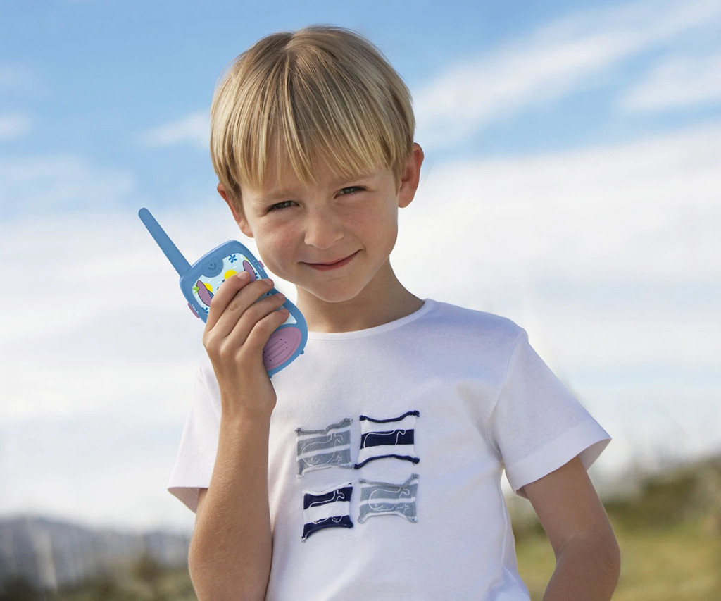Вие и вашият приятел ще можете да си говорите през галактиката с Уоки Токито вдъхновено от Стич. Те могат да се използват както на закрито, така и на открито, а системата за намаляване на шума ще ви осигури невероятно комуникационно изживяване. Изследвайте света на комуникацията с Уоки Токи Стич. Лесни за използване и предназначени за малки ръчички, те позволяват на децата да поддържат връзка, докато играят и изследват.